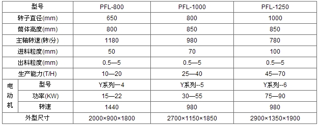 複(fù)合式破碎機 主要技術參(cān)數